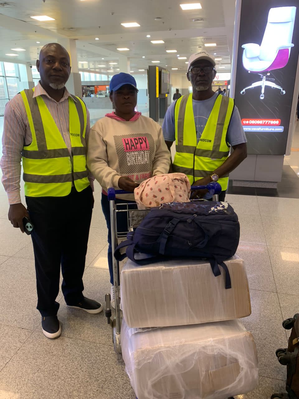 Alale, a 41-year-old indigene of Ogun State, was received at the airport in Lagos by the Head of Lagos office, Mr. Dipo Odebowale on behalf of Chairman/CEO of NiDCOM, Hon. Abike Dabiri-Erewa.